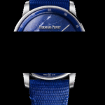 Dial: The natural sodalite stone dial is complemented by a matching blue inner bezel and 18-carat white gold stick hands.