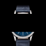 Dial : Embossed pattern and lacquered midnight blue, transfer-printed white-gilt powdered hour markers. White gold faceted dauphine-style hands.