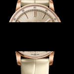 Bracelet: Pearly beige “large square scale” alligator strap with 18-carat pink gold pin buckle.
