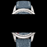 Strap: Calfskin, denim pattern, hand-stitched, blue. White gold fold-over clasp.