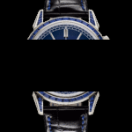 Dial : Lacquered blue with black-gradient rim, white gold applied faceted “obus”-style hour markers. White gold faceted dauphine-style hands.