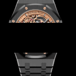 Dial: Pink gold-toned inner bezel, blackened rhodium applied hour-markers and Royal Oak hands with luminescent coating.