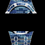 Dial: Dial set with baguette-cut graded blue sapphires and Swiss blue topaz, white gold Royal Oak hands with luminescent coating.