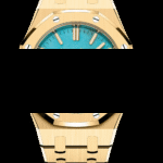 Dial: Turquoise dial, yellow gold applied hour-markers and Royal Oak hands with luminescent coating.