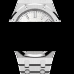 Dial: Silver-toned dial with “Grande Tapisserie” pattern, white gold applied hour-markers and Royal Oak hands with luminescent coating.