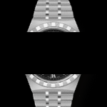 Dial: Black, sunray-finish, with diamonds Applied Roman numerals Day of the week at 12 o’clock Date at 3 o’clock